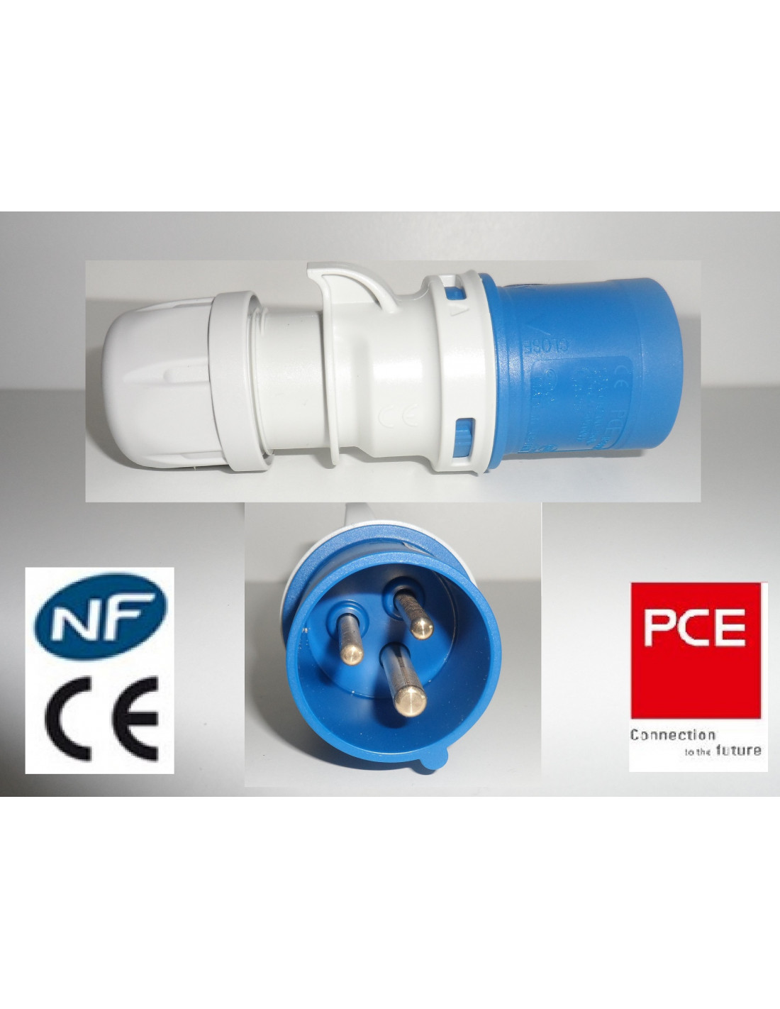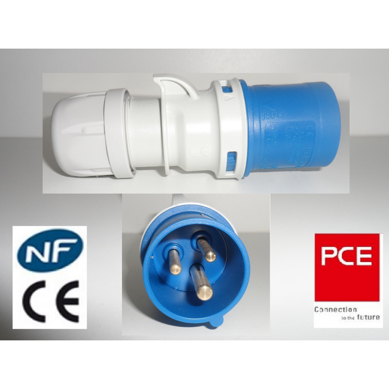 fiche mâle 3 pôles 16A ( 1x16A + neutre + terre ) |